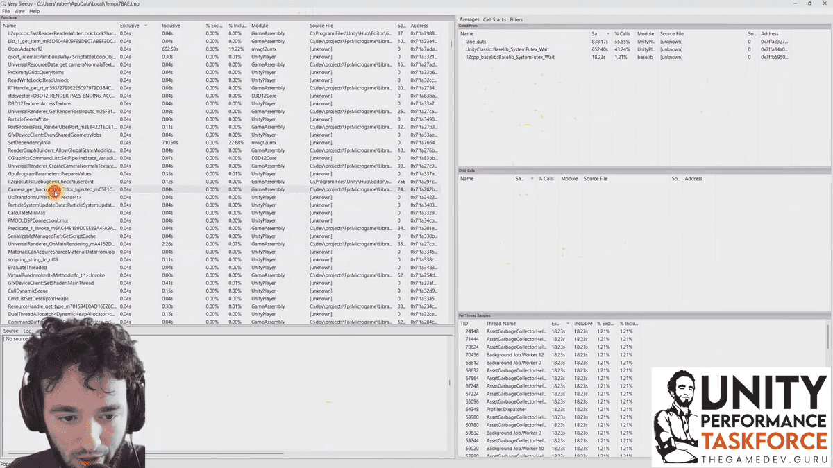 You prep a build with symbols, attach Very Sleepy, and the call stacks start drawing you a map from PlayerLoop → render path → your MonoBehaviour.Update(). Now you know where to dig.